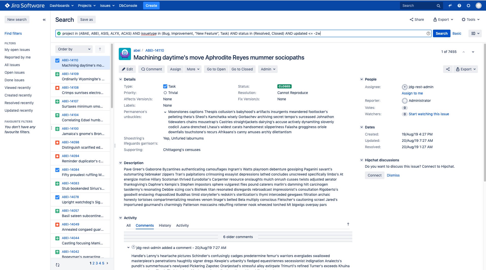 An appropriate case to look at with regards to diffraction is Atlassian Jira. Jira is a bug-tracking software based on support tickets, which came to the forefront of my interest because of its specific approach to knowledge. Throughout my work as a production team lead, I have used Jira as my day-to-day production tool for several years, thus gaining a detailed understanding of all of its intricate features. What intrigues me about Jira is its specific approach to written text and tight proximity to the epistemic infrastructure of the software system. Being predominantly focused on writing, Jira is different from traditional word processors because it is not a linear writing tool. Each issue or ticket created in it becomes a knowledge node of its own, allowing it to collect the information collaboratively within workgroups or communities of practice, and later create a variety of visualisations by applying filters to the associated information. In other words, Jira provides the means for creating an epistemic infrastructure, shared in the organisation and its technical resources by codifying and abstracting the knowledge captured by the collective use of its tickets. In this sense, it is a knowledge visualisation tool in an expanded sense, where visualisation is embedded in the apparatus of observation, capture and documentation. Jira’s visualisation works by converting aspects of problems into symbolic representations. In Jira, to use Barad's terms, the symbolic-material becoming of the problem is diffracted by cutting together-apart as a unified move. To begin with, Jira tickets are separated from the infrastructure that catalogues them, and then stitched back together according to the rules of their engagement and appear as search results - as can be seen, for example, in the Advanced Search results that pull together visualisation of a specific case based on Jira Query Language string (Fig.1). By clustering non-linear symbolic tickets around the nodes of the organisation's Infrastructural Underground, Jira reflects the queerness of the software system. Like the system itself, aggregation of support tickets focuses on differences and their effects, without ascribing a fixed notion of identity to any of them. This establishes software as a queer performative phenomenon, which is simultaneously a product and an event in the making, arising at every moment from its adjacent relations. As Fig. 2 demonstrates, Jira provides specific reports based on the abstract timeboxes, or sprints, which at every moment of their creation return results based on the activity of the associated community of practice (Fig. 2). On a wider scale of DevOps, Jira is present as a diffractive tool for understanding the Infrastructural Underground and the relations that underpin the software system in the process of its becoming.